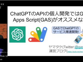 それでは、「ChatGPTの個人開発ではGoogle App Scriptがおすすめな理由」というタイトルで発表させていただきます。