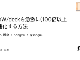 deckはk1LoWさんが開発された、MarkdownからGoogleスライドを継続的に作成するための非常に優れたOSSであり、Goで書かれています。 筆者は、7月からこのツールを使い始めると同時に、その後の数ヶ月で多くの改善提案及びpull requestを行いました。コード行数にすると1万行以上に及びます。最終的にはコア開発者にも加えてもらいました。 deckを使いやすくするための数多くの変更をおこないましたが、中でも特筆すべきはそのパフォーマンス向上でしょう。10分以上かかっていたスライド生成が10秒以内で完了するようになったケースもあり、実に100倍以上の高速化を達成しています。 これらは、良く言われる「計測」で達成できた部分もありますが、実際にはTidy First的に仕様やコードの整理整頓をする中で自然と速くなったもの、その過程で高速化のアイデアが湧いて実現できた物も少なくありません。その過程で作者のk1LoWさんとも議論を重ねることもありました。それらの段階的な改善が、結果的に劇的なパフォーマンス向上に繋がったのです。 本トークでは、実際のdeckの高速化の旅路を具体的事例にとり、OSSやソフトウェア開発におけるパフォーマンスチューニングの秘訣に…