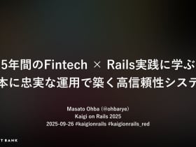 5年間のFintech × Rails実践に学ぶ BRANK Kaigi on Rails 2025 "5年間のFintech × Rails実践に学ぶ - 基本に忠実な運用で築く高信頼性システム" speakerdeck.com 18 days ago Related Topics: Fintech Ruby on Rails arrow_back open_in_new Open page https://speakerdeck.com/ohbarye/5-years-fintech-rails-retrospective