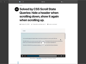 CSSの新しいクエリscroll-stateを使用すると、ページの途中で上にスクロールした際にヘッダだけを再度表示が簡単に実装できるようになります