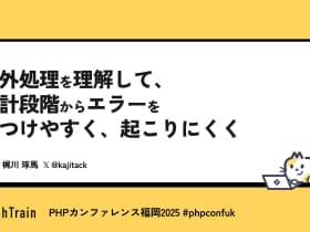 <= 0) { throw new LogicException('Quantity must be greater than 0'); } if (!productExists($productId)) { throw new NotFoundException($productId); } $stock = getStock($productId); if ($stock < $quantity) { throw new InsufficientStockException($productId, $quantity, $stock); } // DBへの保存に発生する例外はcatchしない return Order::create(['productId' => $productId, 'quantity' => $quantity]); } 11/63