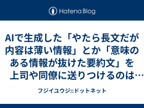 AIで生成した「やたら長文だが内容は薄い情報」とか「意味のある情報が抜けた要約文」を上司や同僚に送りつけるのはやめようね、の話。