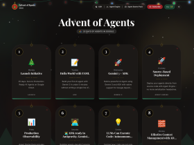 Advent of Agents 2025 DRANK 25 days of Zero to Production-Ready AI Agents on Google Cloud. adventofagents.com 7 days ago Related Topics: arrow_back open_in_new Open page https://adventofagents.com/