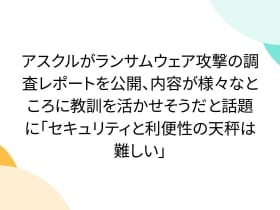 アスクルがランサムウェア攻撃の調査レポートを公開、内容が様々なところに教訓を活かせそうだと話題に「セキュリティと利便性の天秤は難しい」