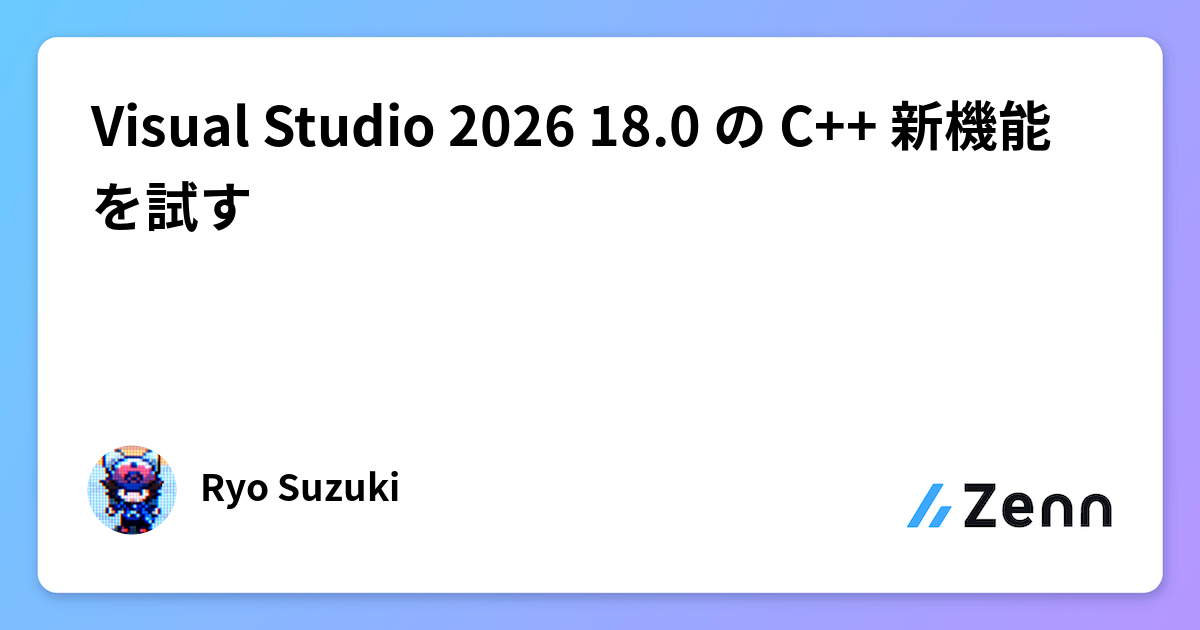 C++ Advent Calendar 2025, 15 日目の記事です。2025 年 11 月 11 日、Visual Studio 2026(以下 VS2026)の最初のバージョンとなる 18.0 がリリースされました。先代の Visual Studio 2022(以下 VS2022)から 4 年ぶりとなるメジャーアップデートです。本記事では、VS2022 の最後のマイナーバージョン(v17.14)から VS2026(v18.0)への移行に伴う、C++ コア言語および標準ライブラリの機能差分をまとめました。C++23 や C++26 の膨大な機能リストを一度に追うのは大変ですが、普段使うコンパイラのアップデートに合わせて差分をチェックしていけば、無理なく最新規格をキャッチアップできるはずです。C++26P3223: Making std::istream::ignore less surprising標準ライブラリの std::istream::ignore() において、第 2 引数に負の値として解釈される char 型の値を渡した場合に、期待した動作にならなかった問題が修正されました「情報を持たない」ことを表す型やプレースホルダーとして、void よりも std::monostate の方が優れていますvoid は void x; std::vector<void> ができないため、テンプレート記述時などに特別扱いが必要になります一方、std::monostate は通…