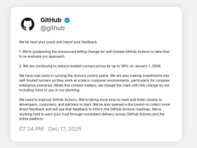 GitHub Actions for Self-Hosted Runners Price Increase Postponed