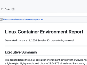 1月15日、Simon Willison氏が「linux-container-environment-report.md · GitHub」と題したGitHub Gistを公開し、海外で話題になっている。この記事では、Claudeの「Coworkモード(Claude Code)」を背後で支える、極めて堅牢なLinuxコンテナ環境の内部構造について詳しく紹介されている。