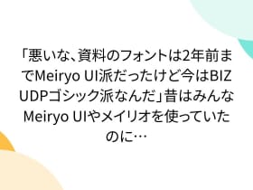 「悪いな、資料のフォントは2年前までMeiryo UI派だったけど今はBIZ UDPゴシック派なんだ」昔はみんなMeiryo UIやメイリオを使っていたのに…