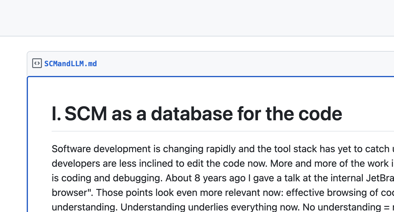 2月16日、gritzkoが「SCMandLLM.md · GitHub」と題した記事を公開した。この記事では、LLM(大規模言語モデル)による開発が加速する中で、既存のGitアーキテクチャが直面している限界について詳しく紹介されている。