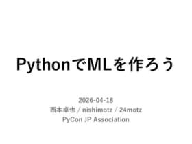 PythonでMLを作ろう DRANK ドクセルはスライドやPDFをかんたんに共有できるサイトです docswell.com 19 hours ago Related Topics: Python arrow_back open_in_new Open page https://www.docswell.com/s/nishimotz/ZR8QXJ-2026-04-19-083332